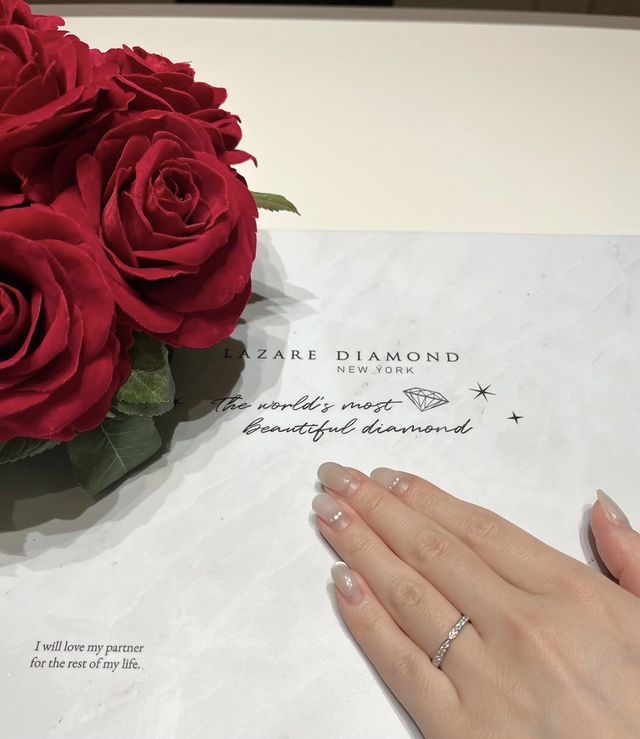 綺麗なだけでなく、アフターケアの安心感をより感じました。結婚指輪も婚約指輪もダイヤモンドの輝きがとても綺麗です。