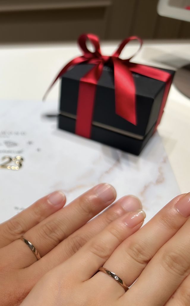 最初はシルバーの指輪を考えていましたが、試着してみると私たちには合わないような気がしてきました。