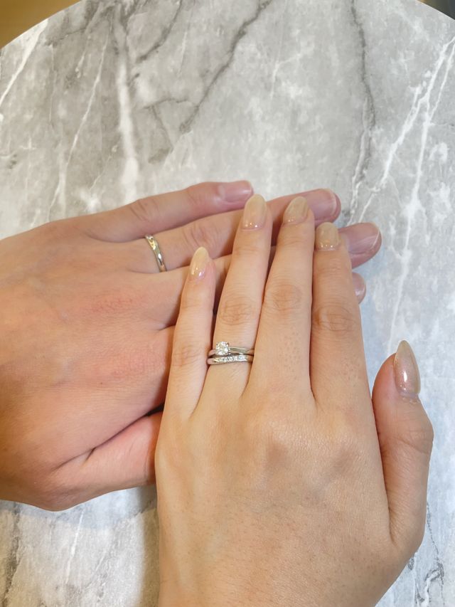 ウェブで指輪を探してた時にコレだと思いました。実際に店舗で拝見すると、くぼみの中にダイヤが敷き詰められていて、ひっかかりや傷つくこと恐れず普段使いしやくすシンプルなので飽きず長く使えると思い選びました。