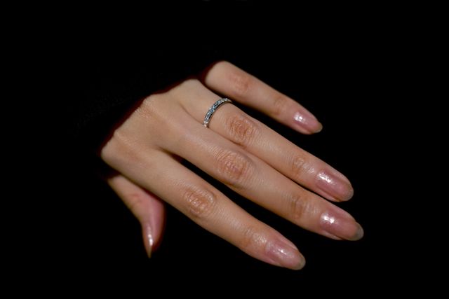 ハーフエタニティを探しておりつけっぱなしOKの指輪はないと思っていたのですが、こちらは鍛造製法といって衝撃などに強い製法で作られているそうです。またレール留めなのでダイヤが取れにくくつけっぱなしでも良いとのことで気に入りました。