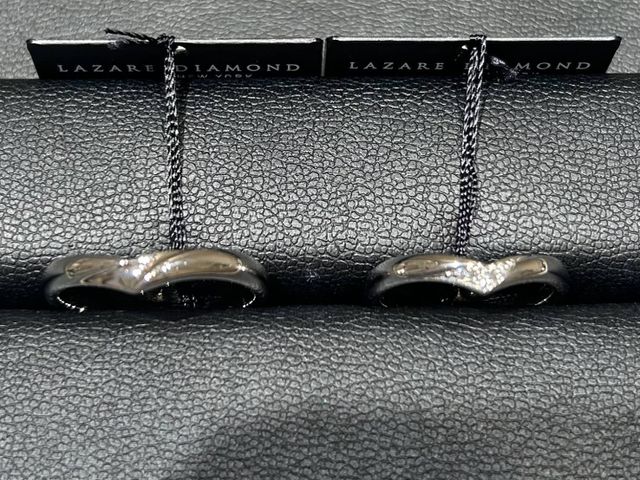 ボリュームが適度にあるV字の指輪を探していて、こちらが目にとまりました。メンズはシャープなラインと切り込みのようなデザインがカッコ良く、レディースはダイヤモンドの数は控えめながら、輝きはキラキラしていてキレイでした。