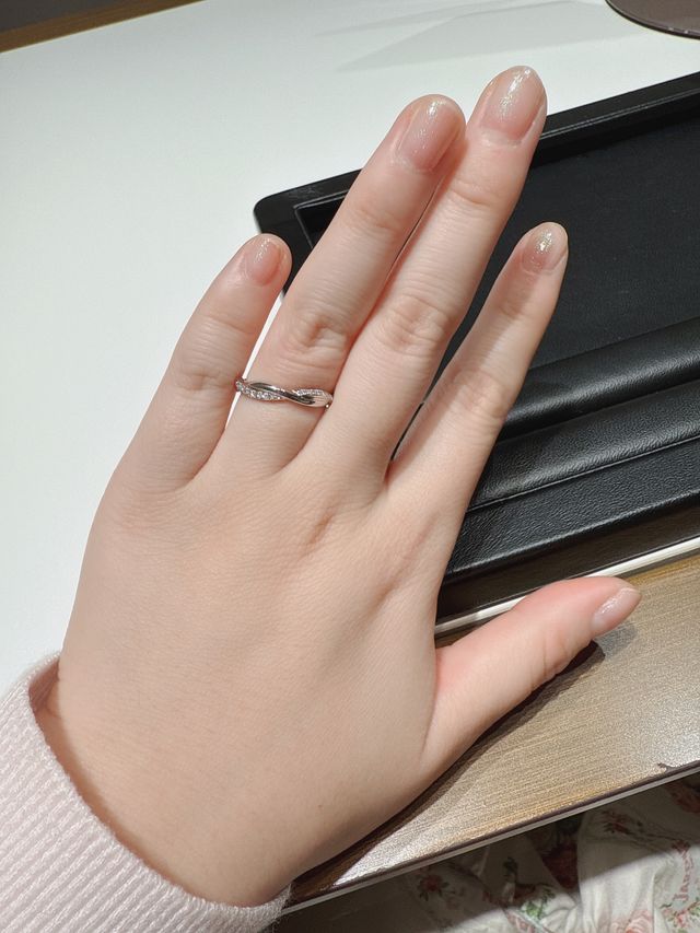 シンプルでありきたりなものは嫌だったので,ねじれもありダイヤモンドもたくさんなこのデザインを選びました。