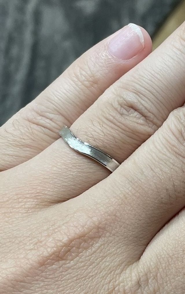 単にプラチナではなくマット加工されているのがオシャレです。厚みもあるので、太い指の人に似合います。