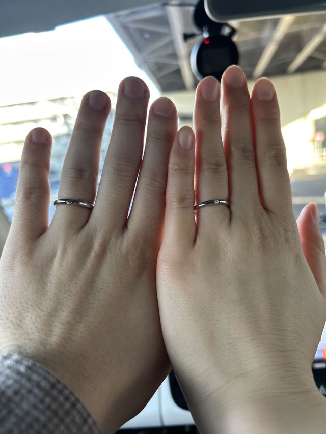 さりげないダイヤモンドとシンプルなデザインが良かったです。他社ブランドと比較し、プラチナの色がシックで高級感のある見た目なので、歳を重ねていっても、長くつけることのできる指輪であり、すてきだと思いました。