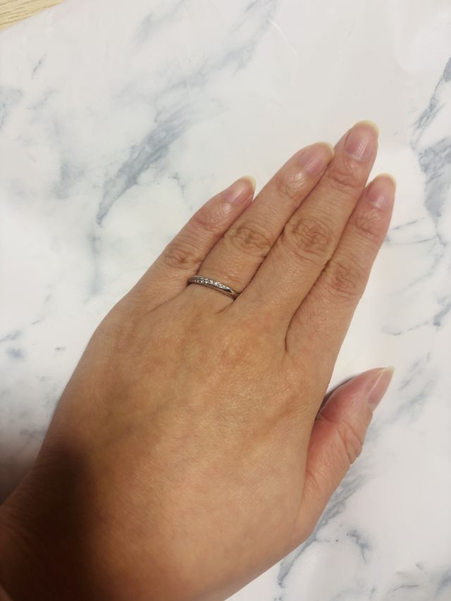 旦那さんも指輪の主張し過ぎないラインのデザインが気に入っています。