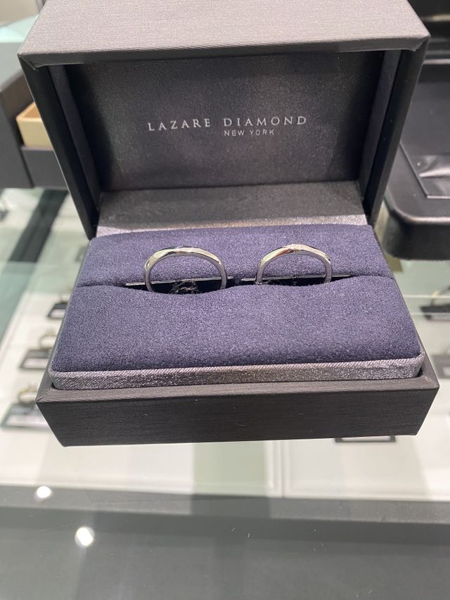 新婦は控えめにダイヤが入ったデザイン、新郎は何もないシンプルなものを希望していました。