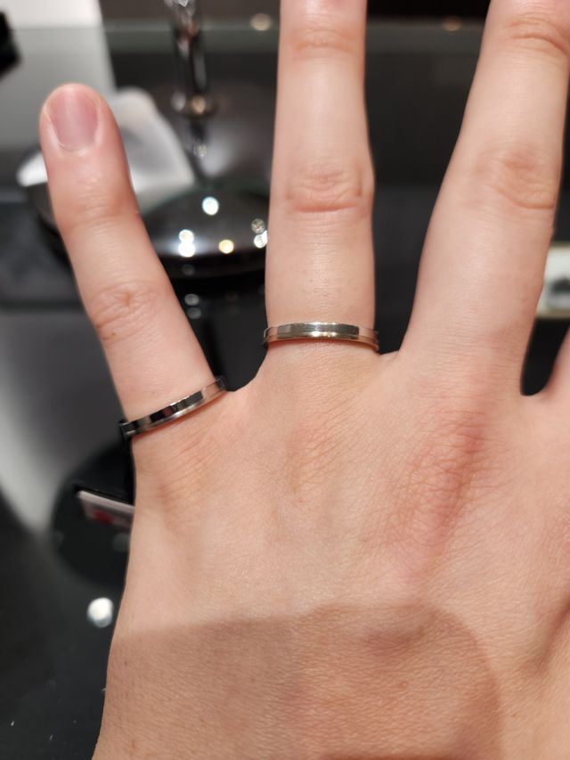 初来店は予約なしで入りましたが、待ち時間もなく丁寧に接客して頂き、店内も落ち着いた雰囲気でお店のコンセプトや指輪の説明を丁寧にして頂きゆっくり指輪を選ぶことが出来ました。2回目以降の来店は予約して入り待ち時間なくスムーズに対応して頂きました。2回目の来店で気に入ったコンビネーションの結婚指輪を成約しましたが、帰ってからプラチナのみの指輪も気になり、翌日電話をして両方見比べてから検討したいと伝えたところ、店舗にプラチナのみの指輪が置いていないとのことでわざわざ東京から取り寄せて頂き、後日来店してから見比べ納得いく指輪を選ぶ事が出来ました。結局、元々成約していたコンビネーションの方を選びましたが、最初から最後まで丁寧に接客して下さいました。変更すると入籍日に合わせていた納期が遅れる可能性がありましたがいろいろご配慮頂き無事入籍日前に受け取る事が出来て良かったです。