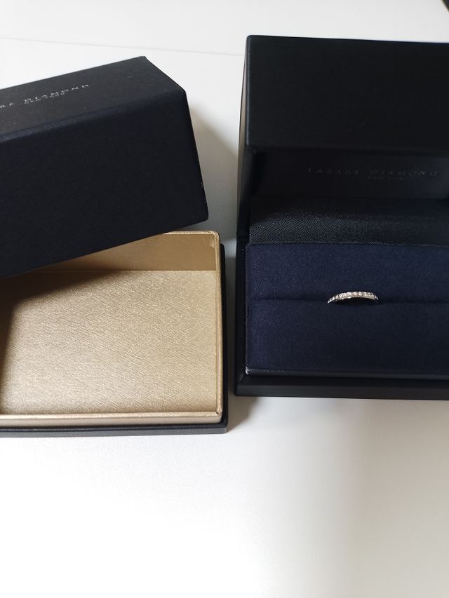 ハーフエタニティなので、気分やオケージョンに合わせてダイヤモンド面を内側にすることもできます。マットな部分もあるのでそれも気に入っている理由の一つです。