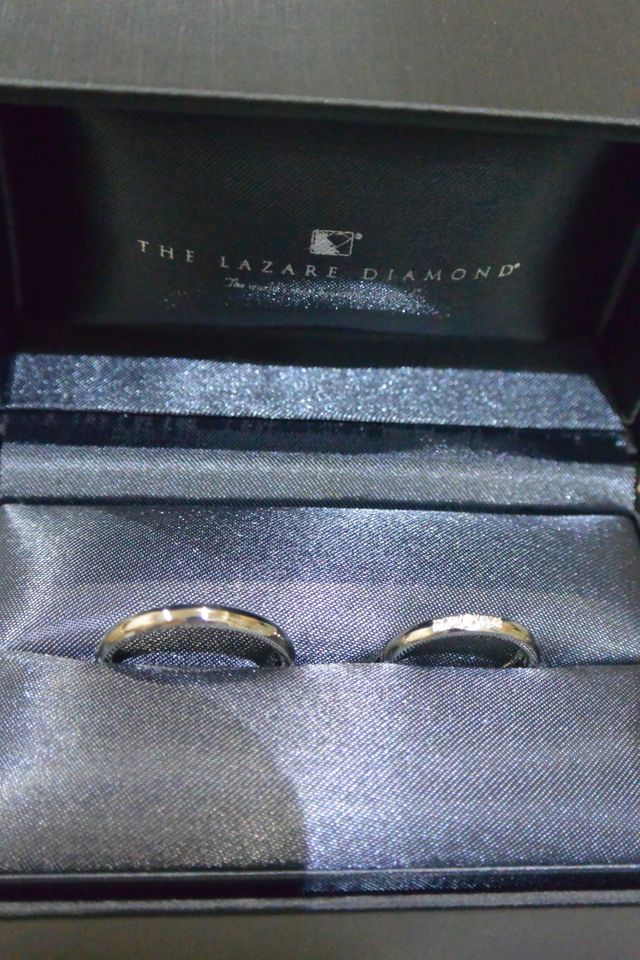 初めはダイヤモンドが入っていないデザインにしようと思っていたけど、お店の方に相談しながら、いろいろと試着してセンターに5つ入っているデザインにしました。仕事につけていても目立ちすぎず、輝きもあるのでとても満足しています。婚約指輪とセットでつけても派手になりすぎず気に入っています。
