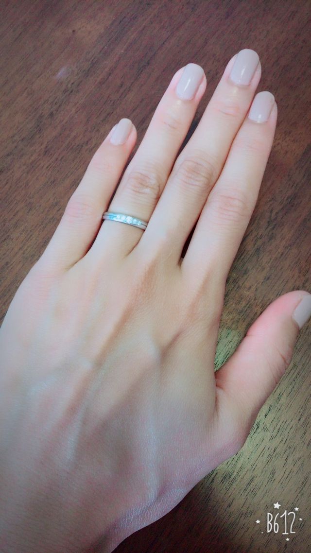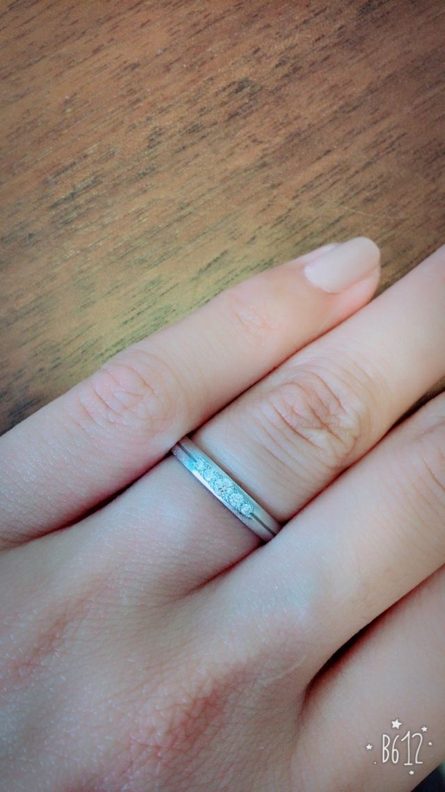 もともと婚約指輪を、ここで旦那さんが購入して、プローポーズされました。旦那さんが婚約指輪を購入した際に、とてもよくしていただいたので、結婚指輪もここのものにしようかと検討したのがきっかけです。デザインも豊富でとても迷いましたが、ダイヤもギラギラさせすぎず、でも華やかに見えるこのデザインに決めました。