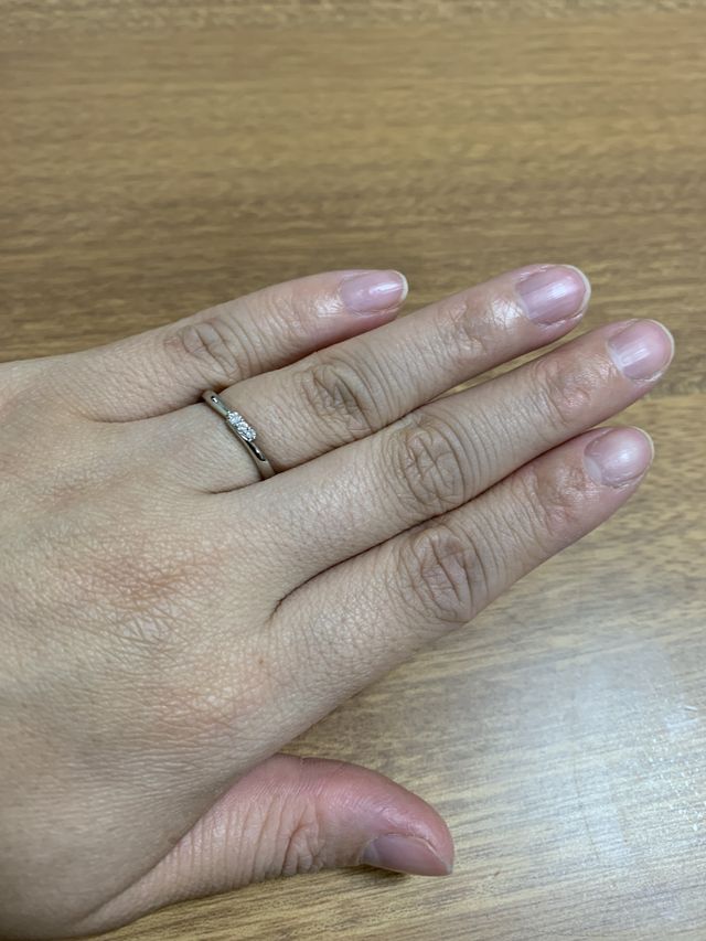 普段使いなのであまり煌びやかでないデザインで探していました。担当の方の対応が素晴らしく、悩む私達にも根気強く付き合って下さいました。シンプルながらもダイヤもしっかり輝いているステキな指輪に出会えて嬉しいです。