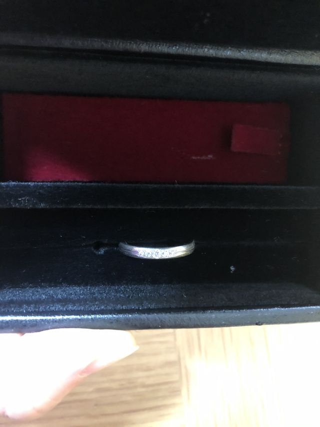 付けっぱなしになるので、突起部分が無いデザインがオススメと店員さんに教えて頂きこの指輪にしました。