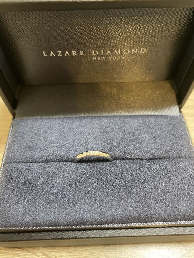 ダイヤモンドの輝き方がとても好みで綺麗だった。シンプルなものがいいと思っていたが、ダイヤモンドが綺麗だったため、ダイヤモンドが入ってる指輪を選んだ。一生もののため、その中でも割とシンプルなデザインにした。