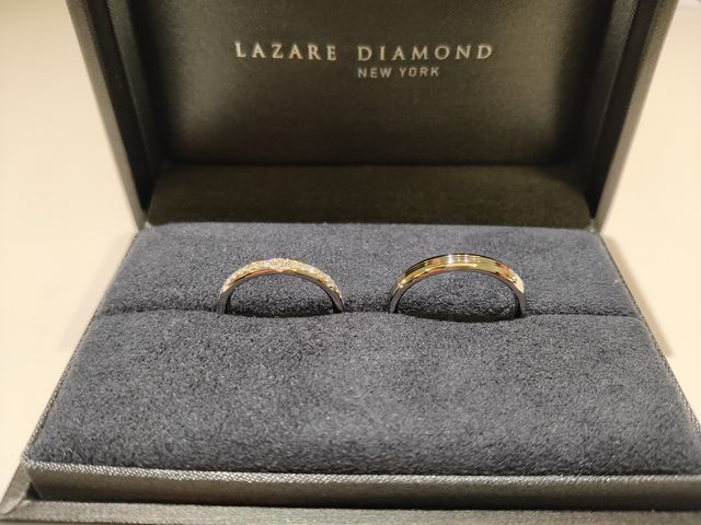裏返すことで使い分けられる、ハーフエタニティリングが第1希望でした。一生つけるものなので、若すぎる、奇抜過ぎるのも避けたかったのですが、かといってメレダイヤが1列に並んでいるだけのような普通過ぎるデザインも微妙、という事で探しました。