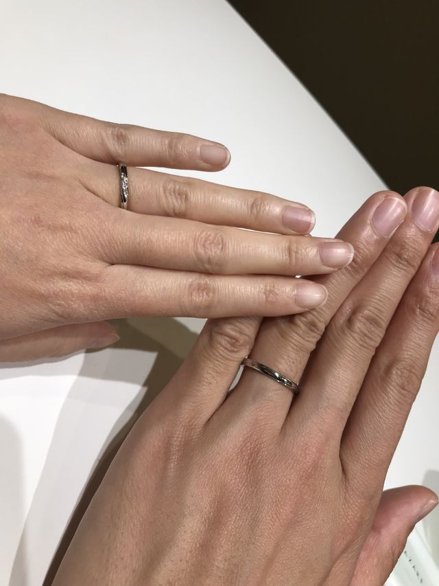 2人ともストレートタイプが希望で結婚指輪を探していた。女性の場合、複数のダイヤがキラキラ輝いていてとても綺麗だった。他の指輪にはないデザインである線が2人の指輪である個性を感じれて選ぶ決め手になった。