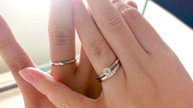 ・シンプルすぎず、派手すぎず、年齢を重ねても付けやすいデザイン。結婚指輪らしさもありつつ、お洒落な感じが気に入りました。