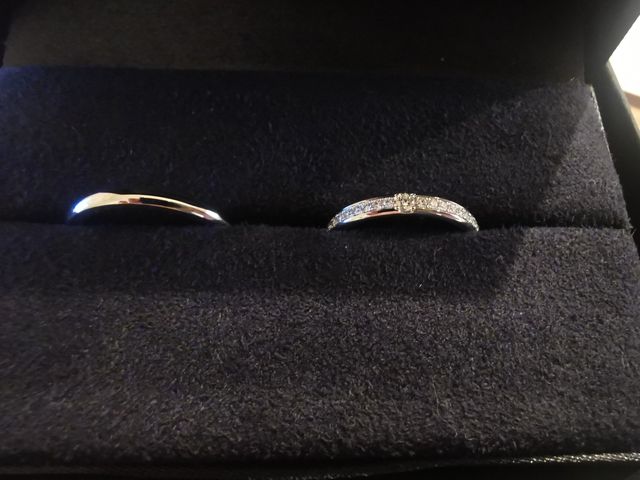 男性用リングは、仕事柄、普段は指輪をしないので、本人的には男性用リングを買わないつもりだったらしいのですが、私が試着しているのを見て欲しくなったみたいです。本当は二人で指輪をつけたいと思っていたので、購入を後押ししていただけて嬉しかったです。シリーズ?が違ってもペアリングのように見える指輪をたくさん見せていただきました。お世話になりました。ありがとうございます。