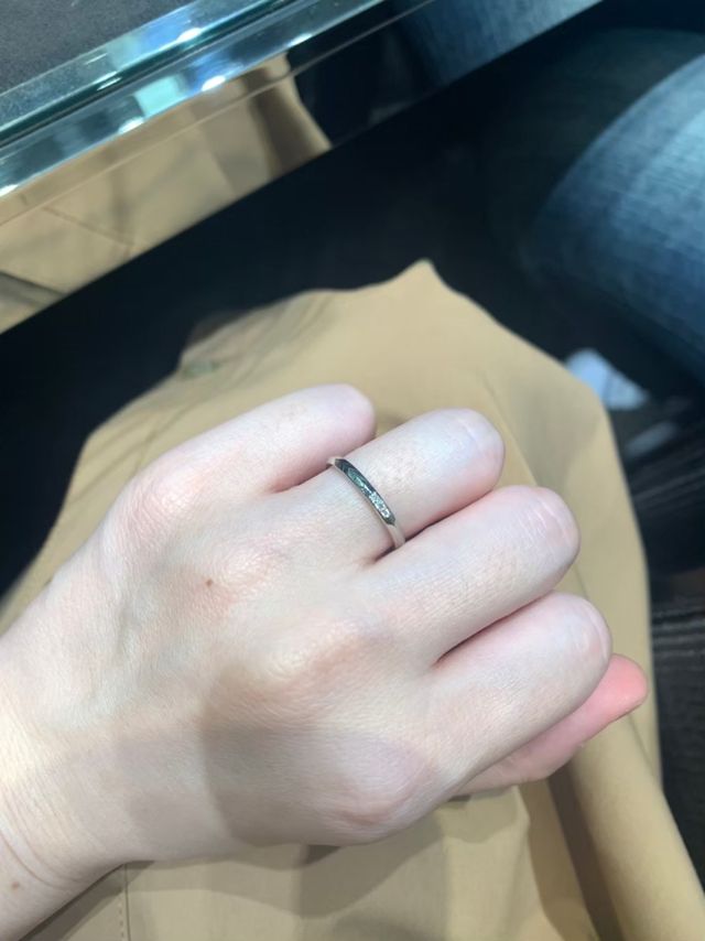 シンプルなものや大人っぽいものがよく探しており、何種類か試着させてもらいました。華奢ながらもダイヤの存在感があり、とても綺麗でした。1件目で決めきれなかったのですが、とてもダイヤモンドの質がいいことはわかりました!