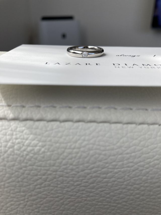 メレダイヤ一粒付きの結婚指輪と決めて探しておりましたので、メレダイヤでも質の良いダイヤを使っているとのことでラザールダイヤモンドに決めました。