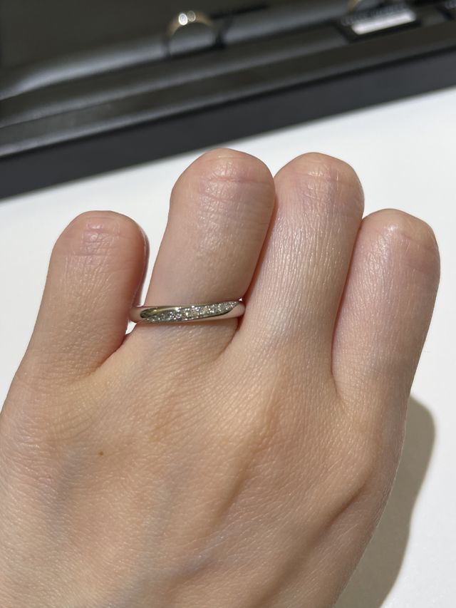 結婚指輪を見に伺いましたが、やはり他のブランドに比べてダイヤモンドの輝きがダントツでした。ネットで見た時と実物をはめるのとイメージが変わるので、実際に店頭で見ないとわからないものだなと思いました。毎日身につけるものだからこそ、購入後の補償もしっかりしているのは魅力的でした。