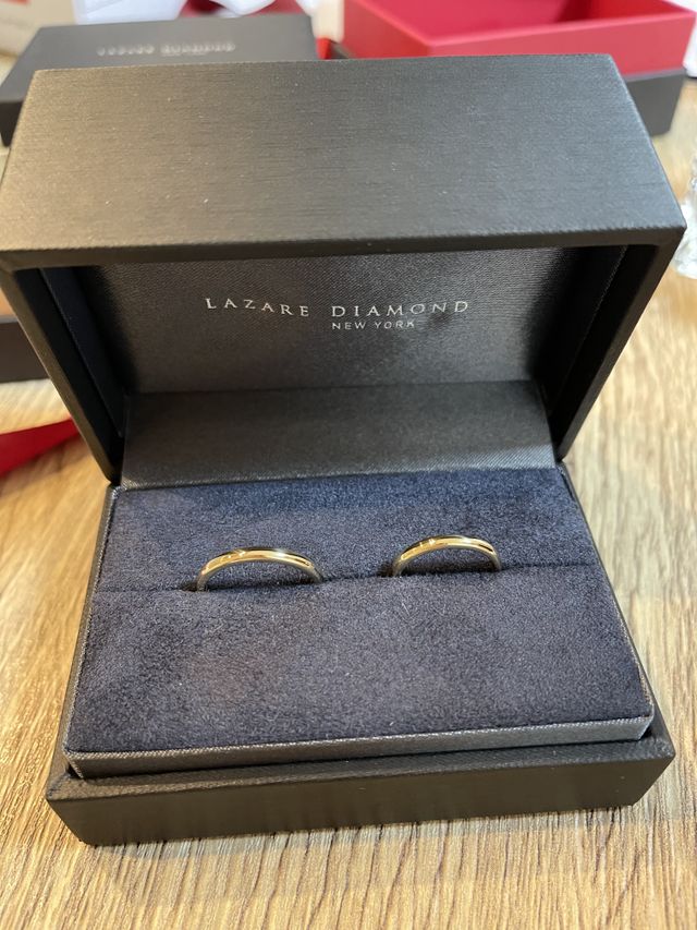 指輪を買う前から、ダイヤなど入っていないシンプルなゴールドにしようと決めていました。2つのシンプルなデザインで最後すごく悩みましたが、実際につけてみて、付け心地や付けた時のデザインなどもとても気に入りこちらを購入しました。