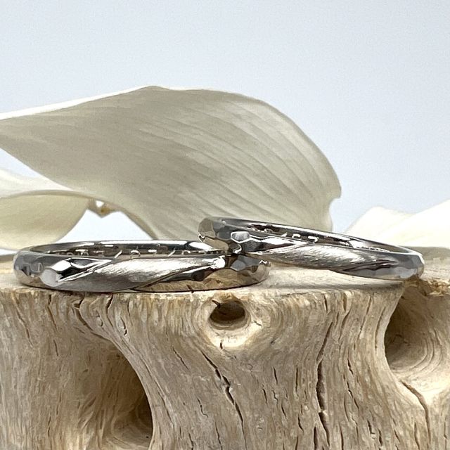 人生に一度のことなので、せっかくであれば自分たちで一から作る指輪が良いと思いました。2人とも普段からハンドメイドでのアクセサリーを身につけていたため、この指輪の先輩作品を見させていただいた時に既製品とは違った味のあるデザインに惹かれました。