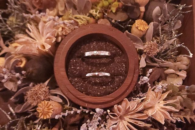 指輪撮影用のフラワーボックスのようなリングピローも、ドライフラワーがお洒落で気分が高まりました。