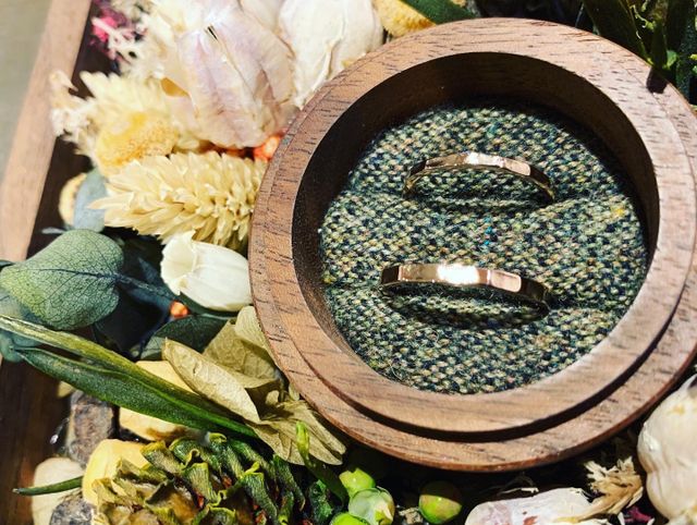 結婚指輪に憧れなどはなくなくてもよいと思っていましたが、ものづくりが好きで、自分たちで作れるなら意味はあるし大切なものになると思いました。既製品やデザイナー製品なども検討したのですが、自分たちが身につけたところを想像して1番しっかりときたお店にうかがいました。