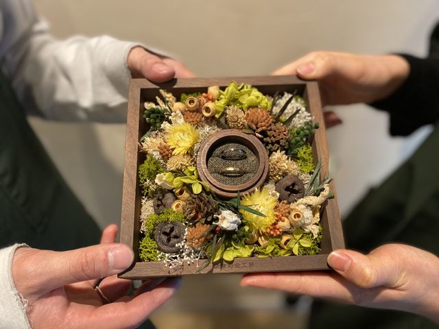 思い出に残したかったから手作りで制作出来るお店を探しました。インスタグラムで検索をしていた所、鎌倉彫金工房さんを見つけました。お互い違う形、色、素材で作りましたがとても満足した仕上がりになりました!!