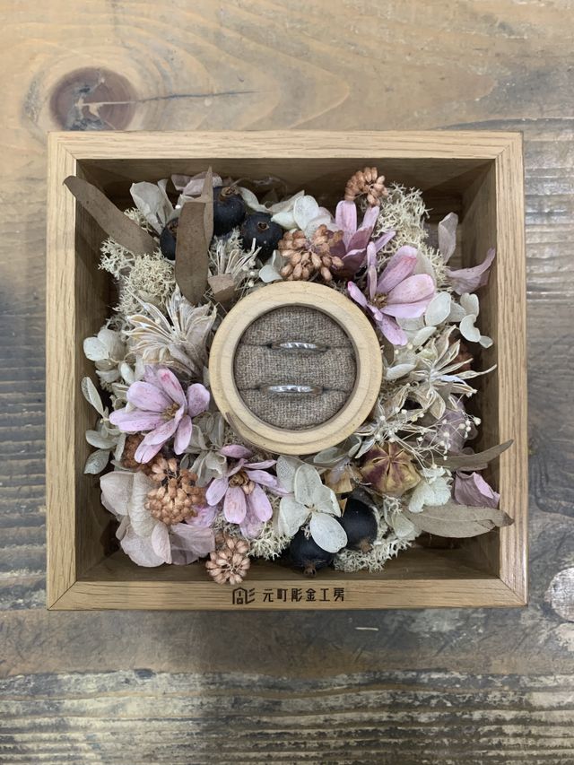 日常使いするため丈夫かつシンプルなものを希望していました。ゴールドと迷ったのですが、ゴールドだと温泉に入ると変色すると聞き、せっかく作った指輪が変色してしまうのは悲しいと思い丈夫なプラチナのものにしました。また、せっかくなら思い出に残るものをと考え手作りにしました。