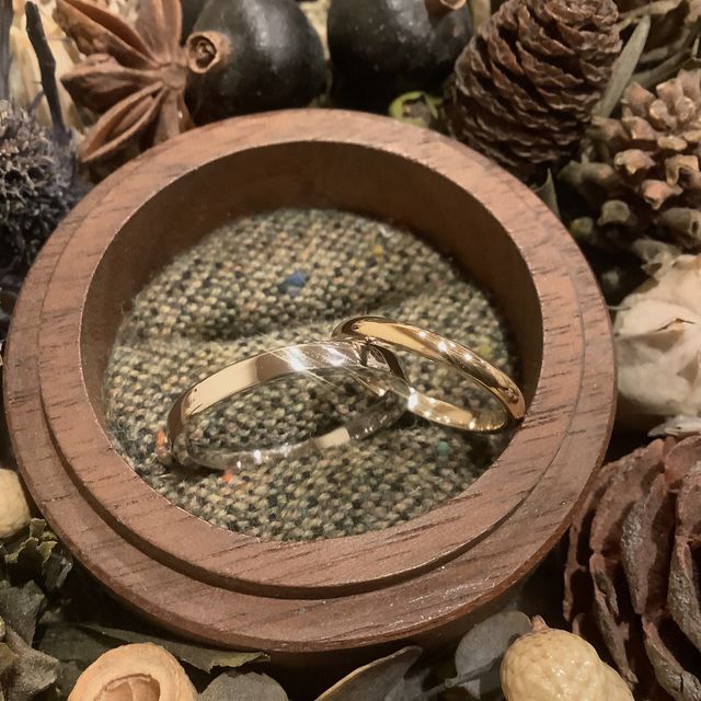 シンプルだけど、マットとクリアという素材で少しオリジナリティーというかおしゃれ感を出せるとおもいこのデザインにしました。また太さも2.0mmで丁度よいのを選べました。旦那さんと異なったデザインにしましたが、自分がつけたいもの似合うものをセレクトできました