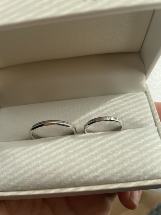 シンプルなデザインが選びました。届いた日が思ったよりすごく綺麗でした。毎日つけて仕事行きたいと思います。大切な物です。ハイブランドの婚約指輪と結婚指輪も見ましたが、自分が求めてる物とは違い、普段着てる服には合わなそうでどれも欲しいとは思いませんでした。