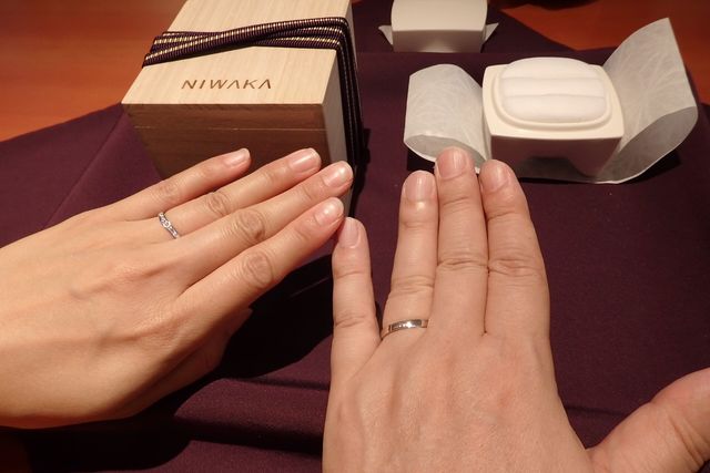もともとハーフエタニティで考えており、ありとあらゆるお店で試着をしてみたのですが、ストレートラインじゃない個性的なラインに惹かれました。普通じゃ物足りない自分にはぴったりだと思い、散々ほかを見たのは、「やっぱりこれだ」と再確認する作業だったと思います。