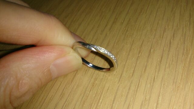 ずっとつけるものなので、飽きのこないようシンプルなものを探していました。かと言ってシンプルすぎるのも寂しいので、ホワイトダイヤが入っていてキラッと光る女性らしさと、よく見るとシンプルながら重なり合うデザインが特徴のこれがとても気に入り、購入しました。