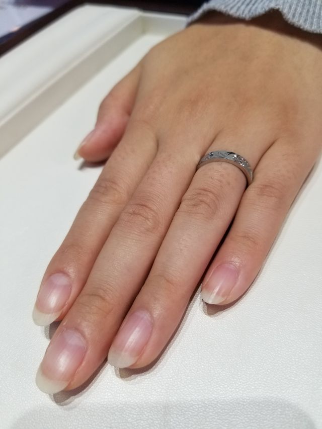 指輪の意味も、掘り方へのこだわりにも感動し、俄の指輪にすると即決でした!