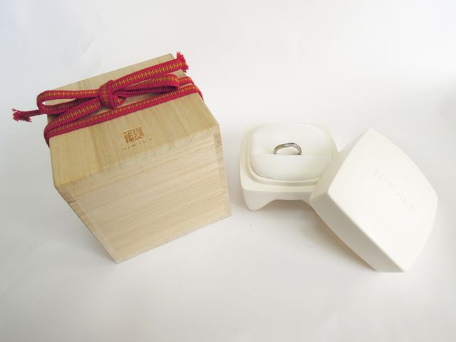 さらに購入で頂けるリングケースは陶器。さらに保管用の桐箱と、それをしっかりと結んでくれる赤い紐。