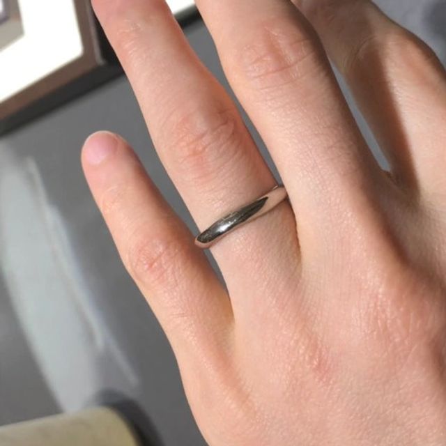 付け心地が非常に良かった点が決め手ですね。プラチナのみであり石は入っていませんがラインがねじった様なデザインなので光の反射により表情がありキレイです。ひねったデザインになっていますが、ライン自体はストレートなので重ね付けもしやすいです。