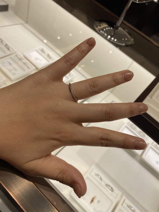 京都発祥のブランドということもあり、和をモチーフとしていて、個性的なデザインも多かったです。また、それぞれのデザインにストーリーがあり、素敵でした。どのリングも日本人の薬指に合うように作られているそうで、着け心地も良かったです。