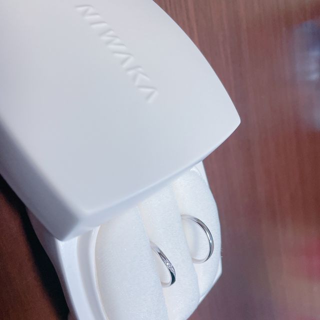 控えめなダイヤに、指を綺麗に見せてくれるリング幅にとても気に入りました。
