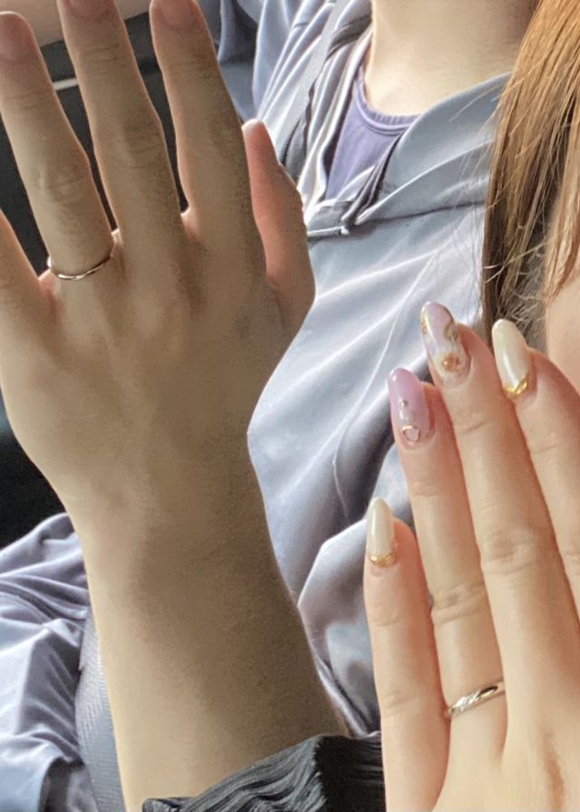 和風な感じで綺麗目デザインが豊富な印象を受けた。少しづつ異なったデザインで用意があり、どれを選ぶか迷った。着用して指が華やかに見えたので、ダイヤが斜めに入っているものを選んだ。