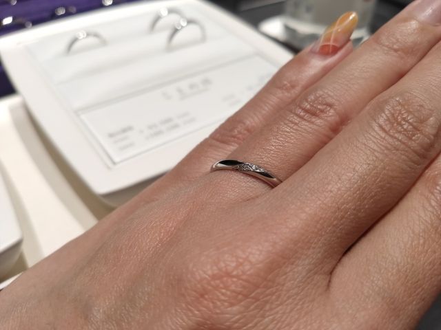 婚約指輪を既に俄で購入していて、同じブランドで統一したいなとお互いに思っていたので、購入しました。実際にお店で指輪を観ていたときに予算面でもデザインも気に入ったのが今つけている結婚指輪で、シンプルで私たちの指に馴染みそうだなと思い購入しました。