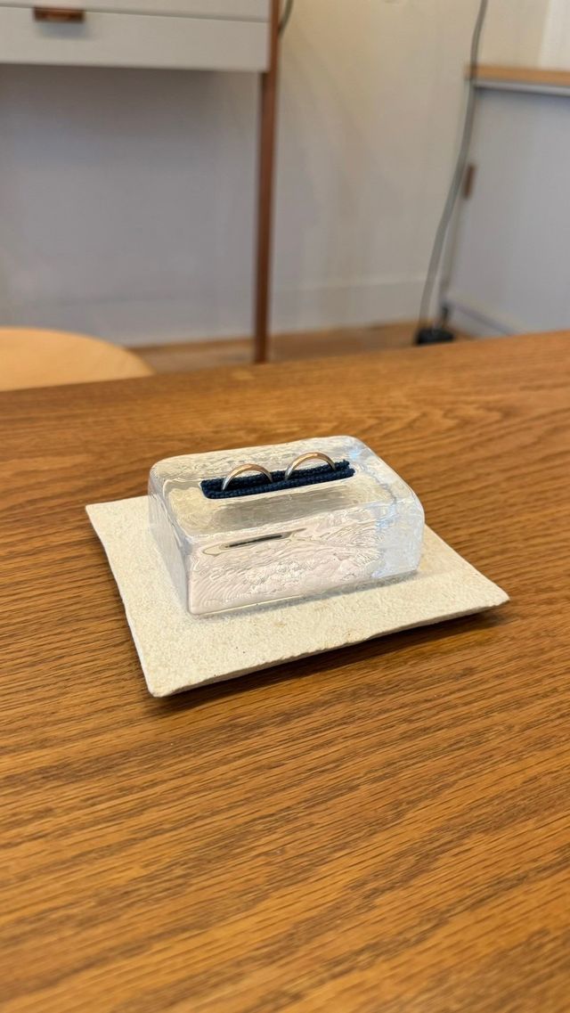 オーダーしてから即作成ではなく、一度プレリングを作成いただき、サイズ感やデザインを見てから本制作に入っていただける点に魅力を感じました。その分4ヶ月ほど時間はかかりますが、一生に一度の機会に、気持ちに余裕をもてて良かったと思います。