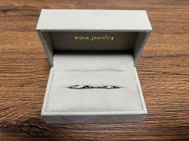 完成したリングはとても綺麗に可愛く包装されて届いたので、ふたりで素敵だねと笑顔になりました。