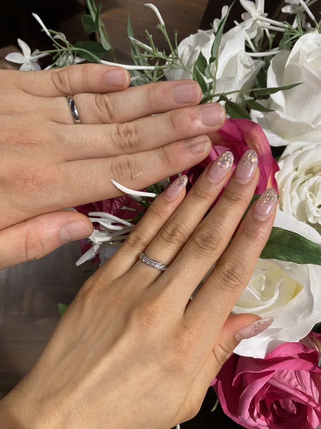 ハーフエタニティで探していました。アフターサービスがしっかりしており、またフルオーダーができ自分の納得のいくデザインにすることができたのが決め手です。