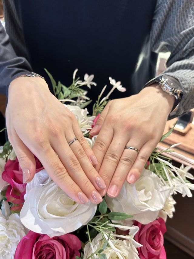 担当してくださったFさんというスタッフの方がとても親身になってデザインなど一緒に考えてくださったので、2人とも妥協することなく素敵な指輪を作ることができました!