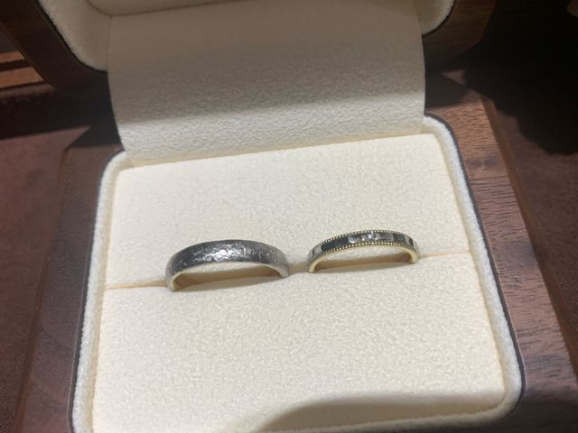 指輪本体の作成に入る前に入籍指輪を作っていただいて、サイズ感や着け心地などを試してから安心して作成に入れる。