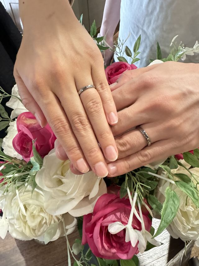 細かなところまで相談にのってくれるので、自分たちのこだわりを散りばめること出来ました。長く着ける事を考えた時に、鍛造法で製造してくれる点にも魅力を感じ、今回こちらでお願いしようと思いました。じっくりとそれぞれの希望を聞いてくれるのでオリジナルな指輪に仕上げてくれる点がよかったです。