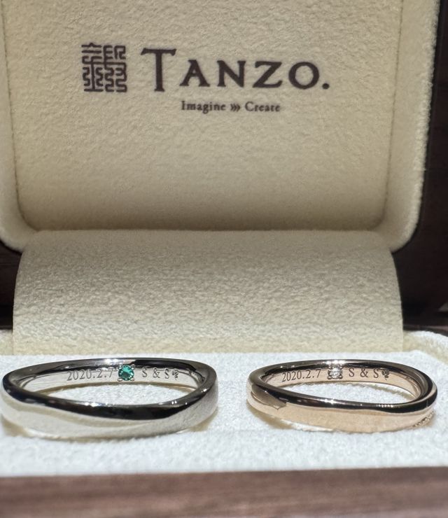 私たちは最初(入籍前に)2020年に指輪の検討を始め、初めて2人で行ったのがTANZOさんでした。その後色々と悩みに悩んだ末に、やはりTANZOさんが良い!と思い、子供が産まれた後の2024年に成約させて頂きました。