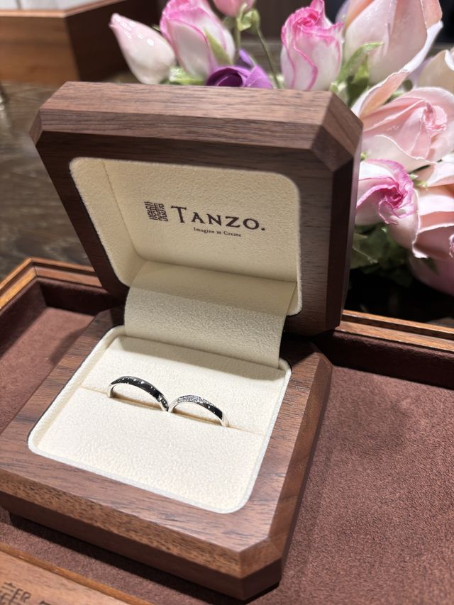 オーダーメイドで自分たちの特別な指輪を作りたかったので、TANZOを選びました。色々な加工ができるので、かなり悩みましたが、ふたりで悩む時間も楽しかったです。また、鍛造製法で傷つきずらいという点もかなり魅力的でした。