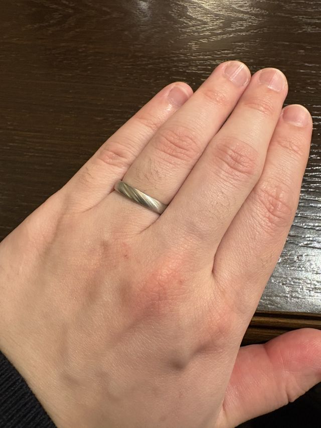 望んでいたストレート系で斜めヘアラインでマット目に加工してもらったのでどんな服装にも合わせやすい感じで大変満足しています。